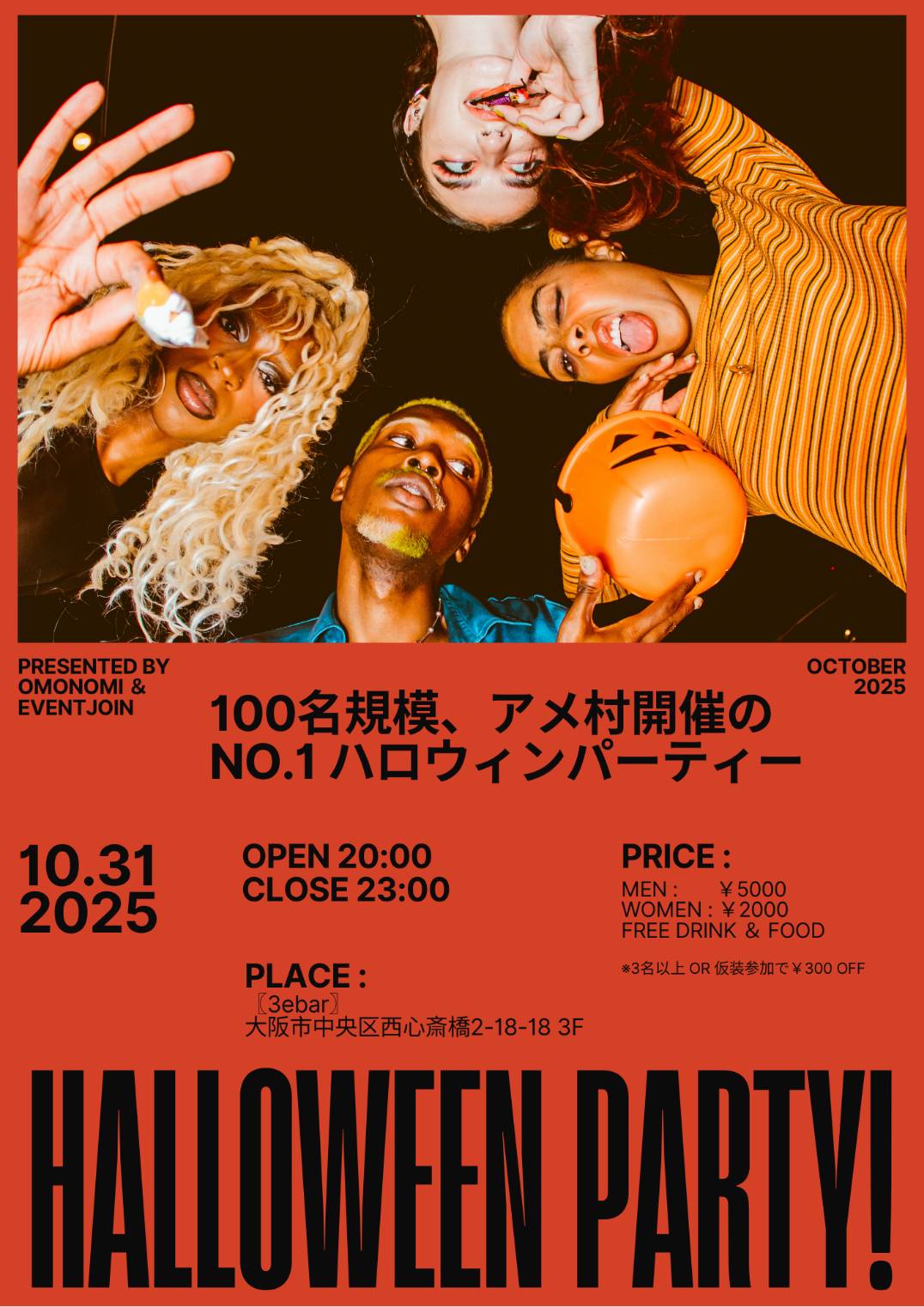 ☆★大阪心斎橋開催の100名ハロウィンパーティーイベント♪アメ村ど真ん中!2025も仮装・コスプレで楽しもう!☆★